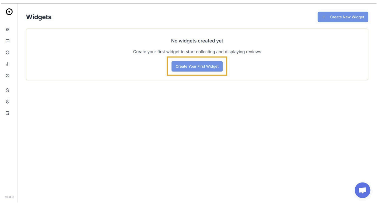 1. Navegar a Widgets ● Ve a la sección "Widgets" 2. Crear Nuevo Widget ● Haz clic en el botón "Create new widget"