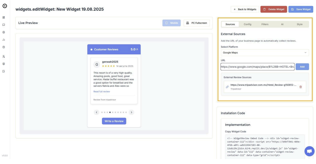 Instrucciones para Crear Widget de Reseñas